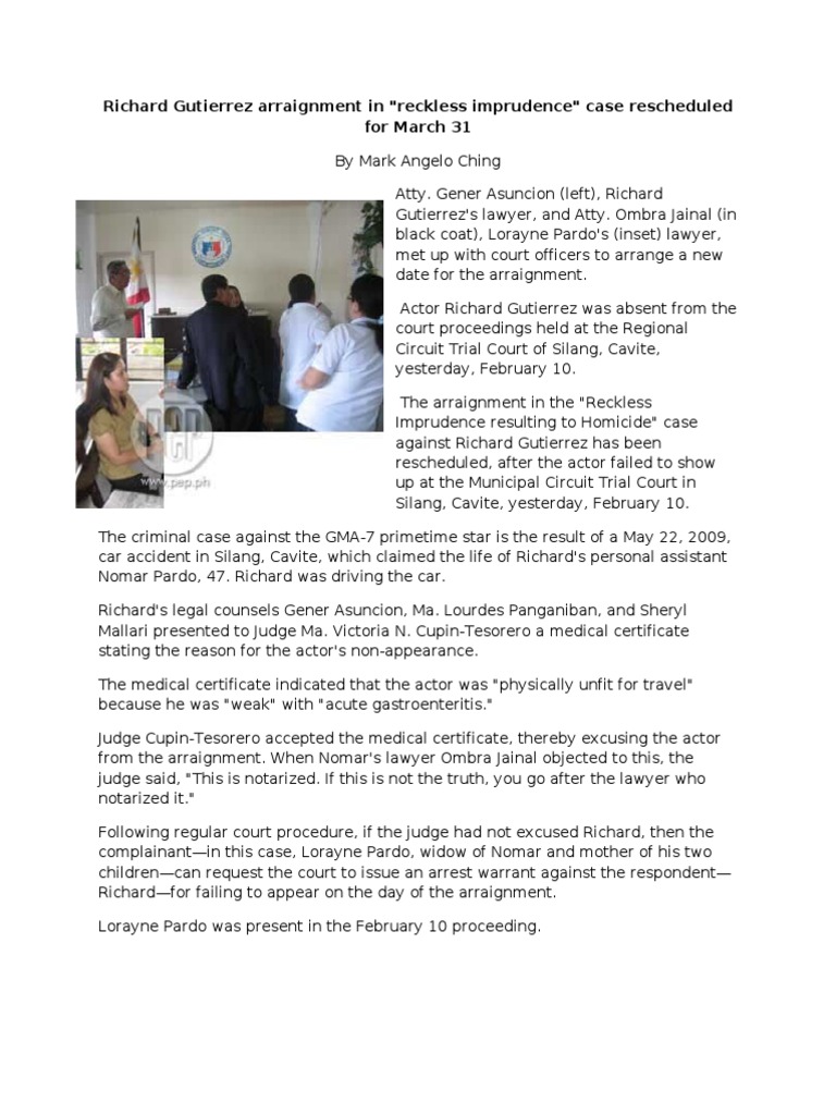 Actor Richard Gutierrez Hurt In Car Accident One More Injured One Killed Aliwan Avenue from aliwanavenue.files.wordpress.com Marie glen abraham on the dismissal of reckless imprudence resulting to homicide case against the actor: Rosa rd., silang, cavite and will undergo a cornea operation. By continued use, you agree to our privacy policy and accept our use of such cookies. The court of appeals has reinstated the charge of reckless imprudence resulting in homicide against actor richard gutierrez in connection with the may 2009 car accident in silang, cavite province. In fact, he was also injured as a result of said accident. Unfortunately his assistant and colleague nomar pardo was also in the car and. Rosa rd., silang, cavite and will undergo a cornea operation. On tuesday, sarah shared a photo of themselves holding and looking at each other while standing on the wooden pathway with the.
